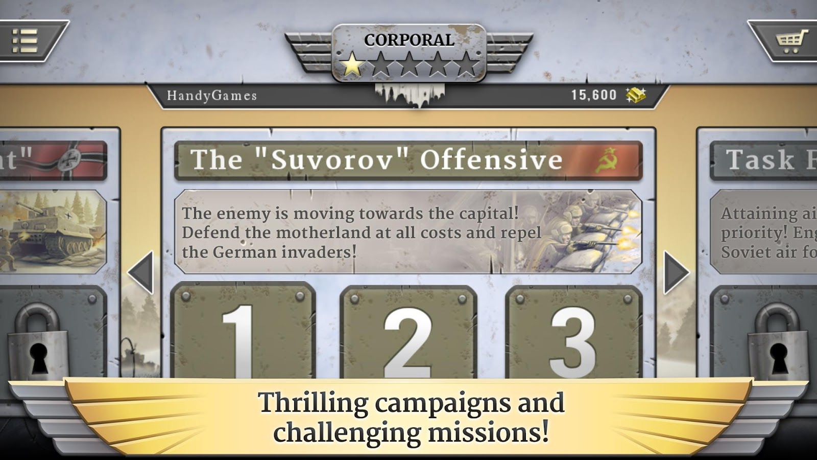 ¡Libra impactantes batallas de la Segunda Guerra Mundial en este nuevo y apasionante éxito de estrategia de la mano de HandyGamesâ¢!Dirige a las fuerzas alemanas en su alzamiento hacia el Este o defiende a tu pais en el lado soviético. ¡Demuestra que eres un general con ingenio en FROZEN FRONT!